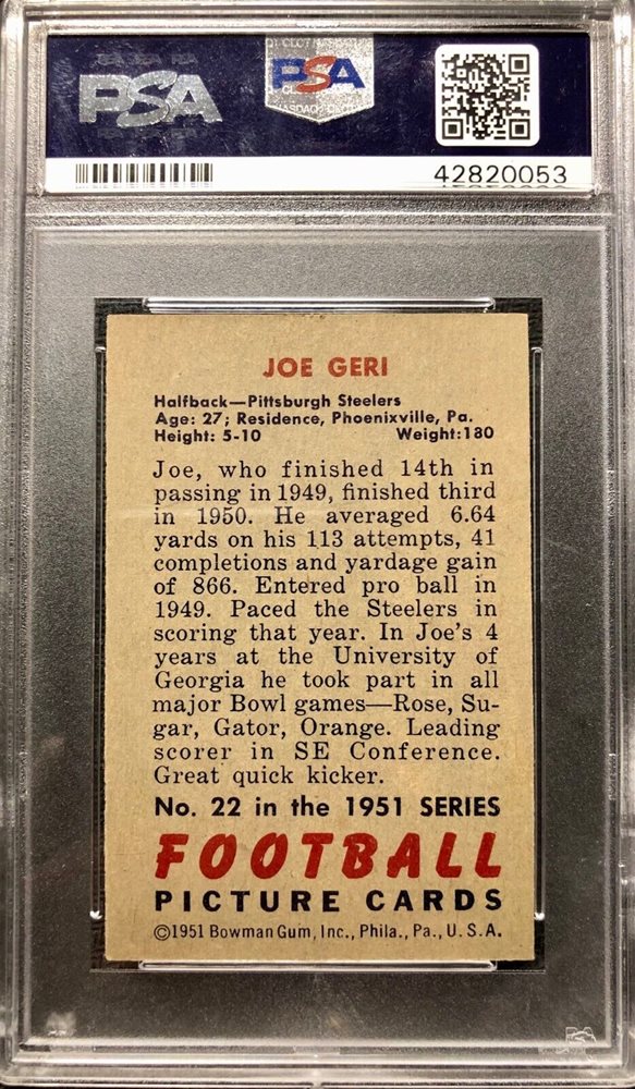 Auction Prices Realized Football Cards 1951 BOWMAN Joe Geri