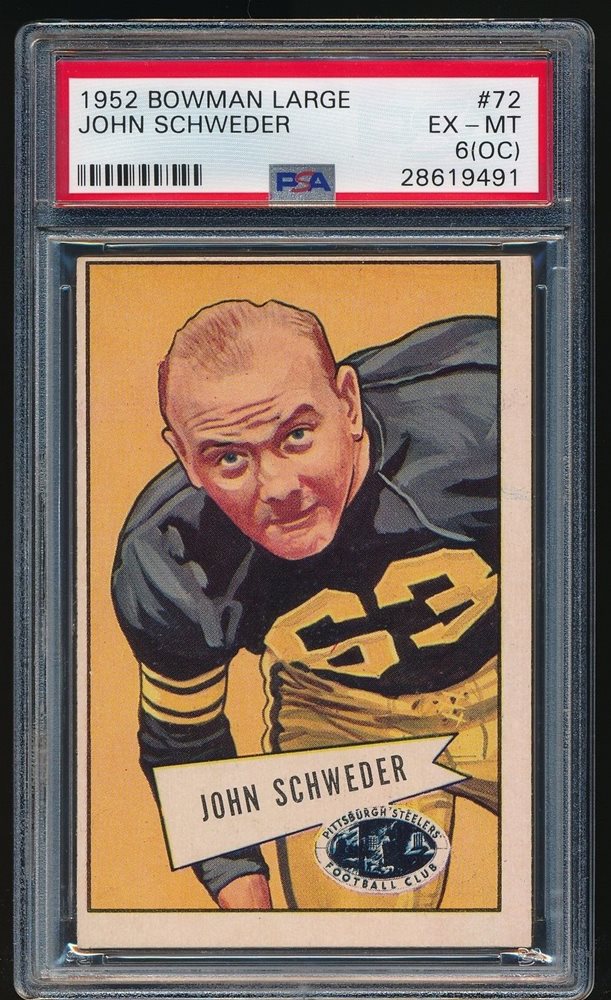1952 BOWMAN LARGE JOHN SCHWEDER PSA EXMT 6 STEELERS #72 ROOKIE, SHORT PRINT