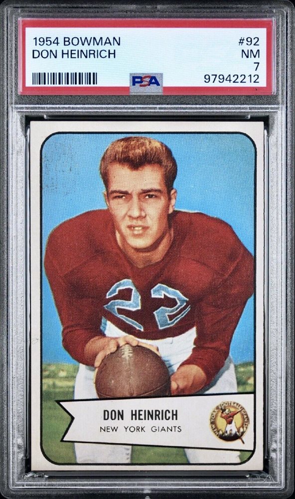 1954 Bowman #92 Don Heinrich Giants-FB SHORT-PRINT RC Washington PSA 7 - NM