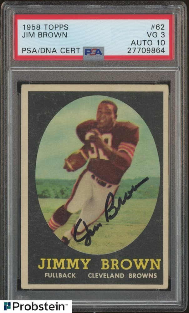 Jim Brown HOF Signed 1958 Topps Football #62 RC Rookie PSA 3 PSA/DNA AUTO 10