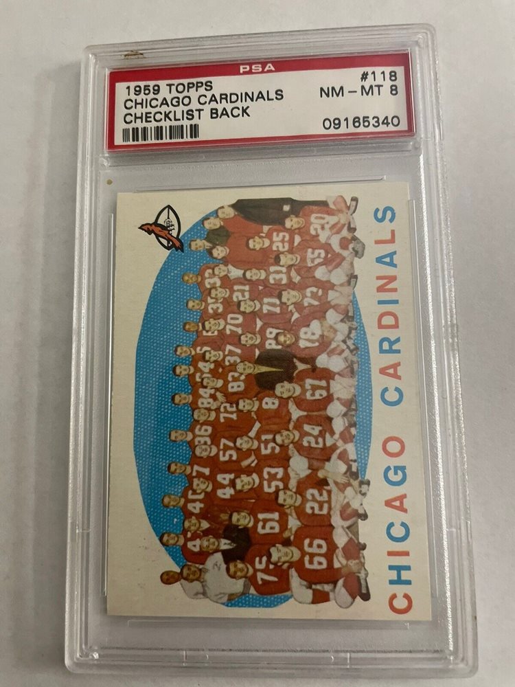 1959 Topps Chicago Cardinals Checklist Back #118 PSA 8