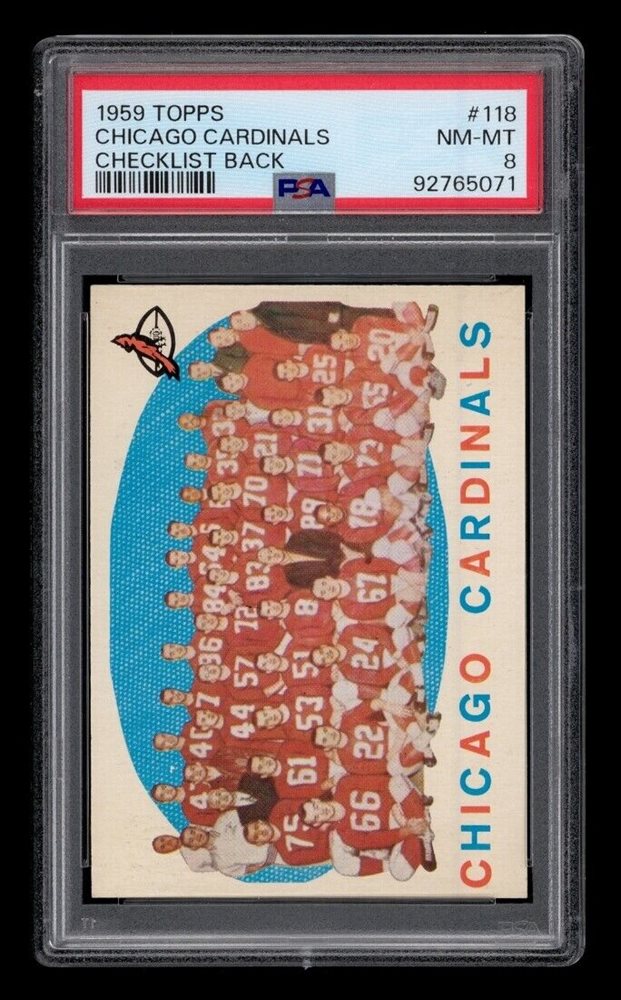 1959 Topps Set-Break #118 Chicago Cardinals Checklist Back PSA 8 NM-MT