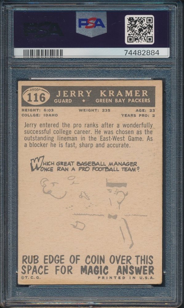 1959 Topps Football Jerry Kramer ROOKIE #116 PSA 3 PACKERS VG HOF
