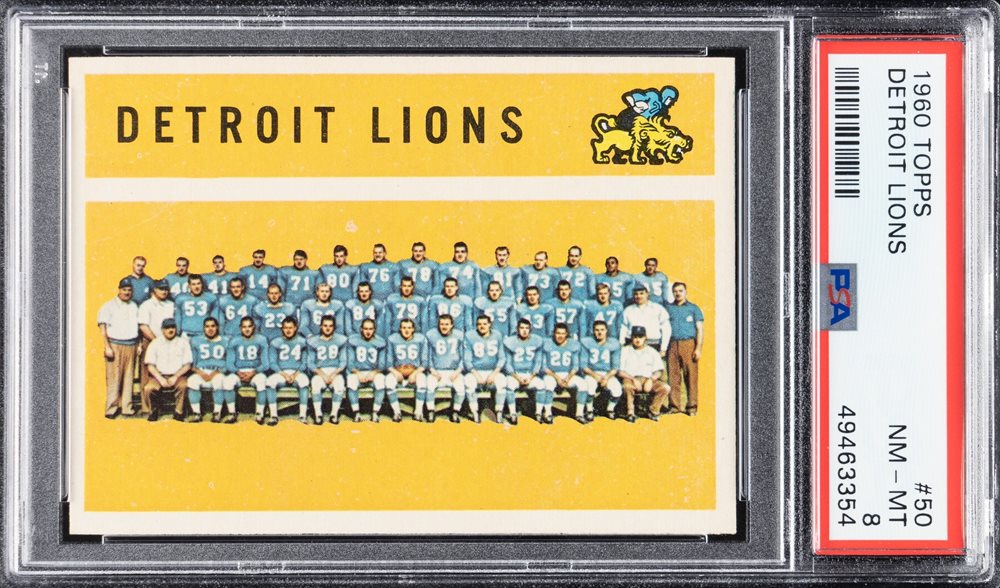 Lot # 2251: 1960 Topps Football #50 Detroit Lions Team PSA NM-MT 8