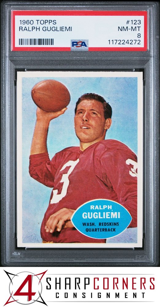 1960 TOPPS #123 RALPH GUGLIEMI REDSKINS PSA 8