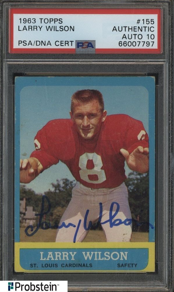 Larry Wilson Signed 1963 Topps Football #155 Cardinals PSA PSA/DNA 10 AUTO