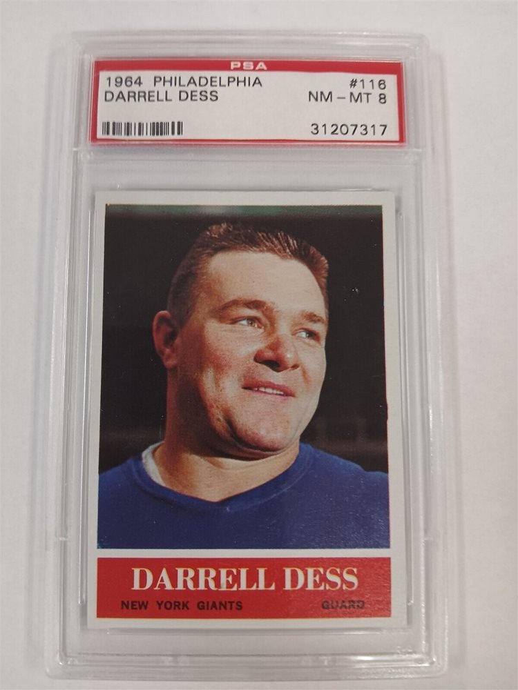 1964 PHILADELPHIA GUM FOOTBALL #116 DARRELL DESS PSA 8 NEW YORK GIANTS !!!