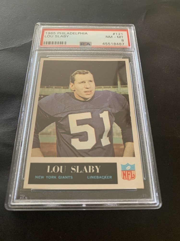 1965 Philadelphia Football #121 Lou Slaby PSA 8 POP 49 Giants Pitt Set Break