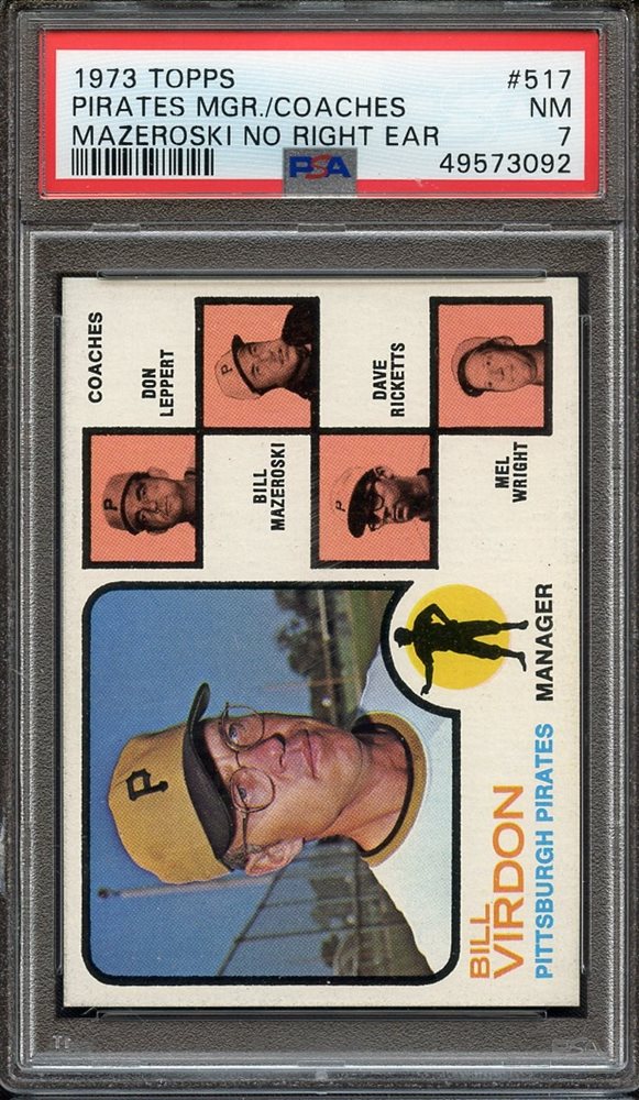 1973 TOPPS 517 PIRATES MGR./COACHES MAZEROSKI NO RIGHT EAR PSA NM 7