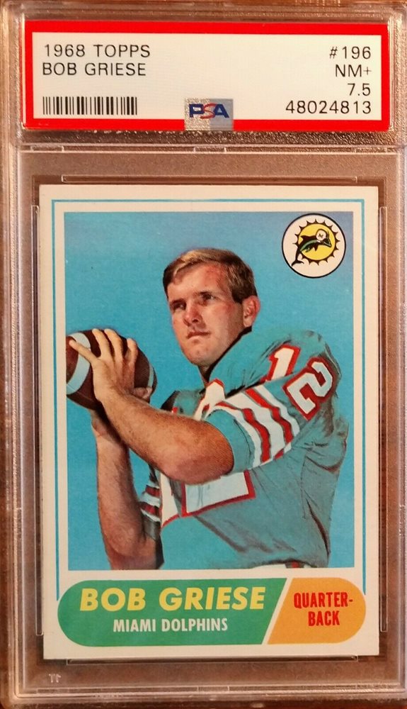 1968 Topps Football Bob Griese 196 PSA 7.5 NM+, Rookie, perfectly centered
