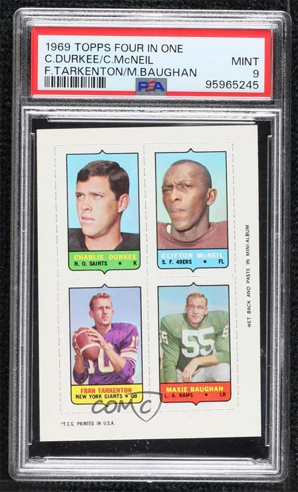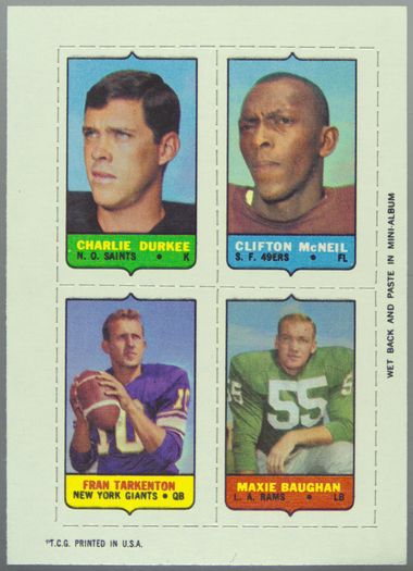 Auction Prices Realized Football Cards 1969 TOPPS FOUR IN ONE Baughan / Durkee / McNeil / Tarkenton