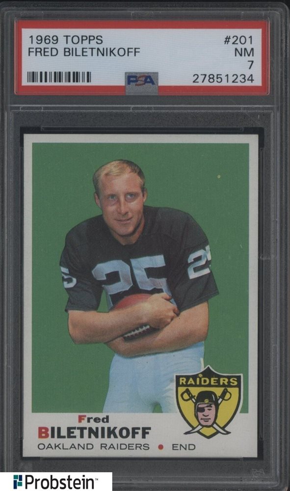 1969 Topps Football #201 Fred Biletnikoff Oakland Raiders HOF PSA 7 NM
