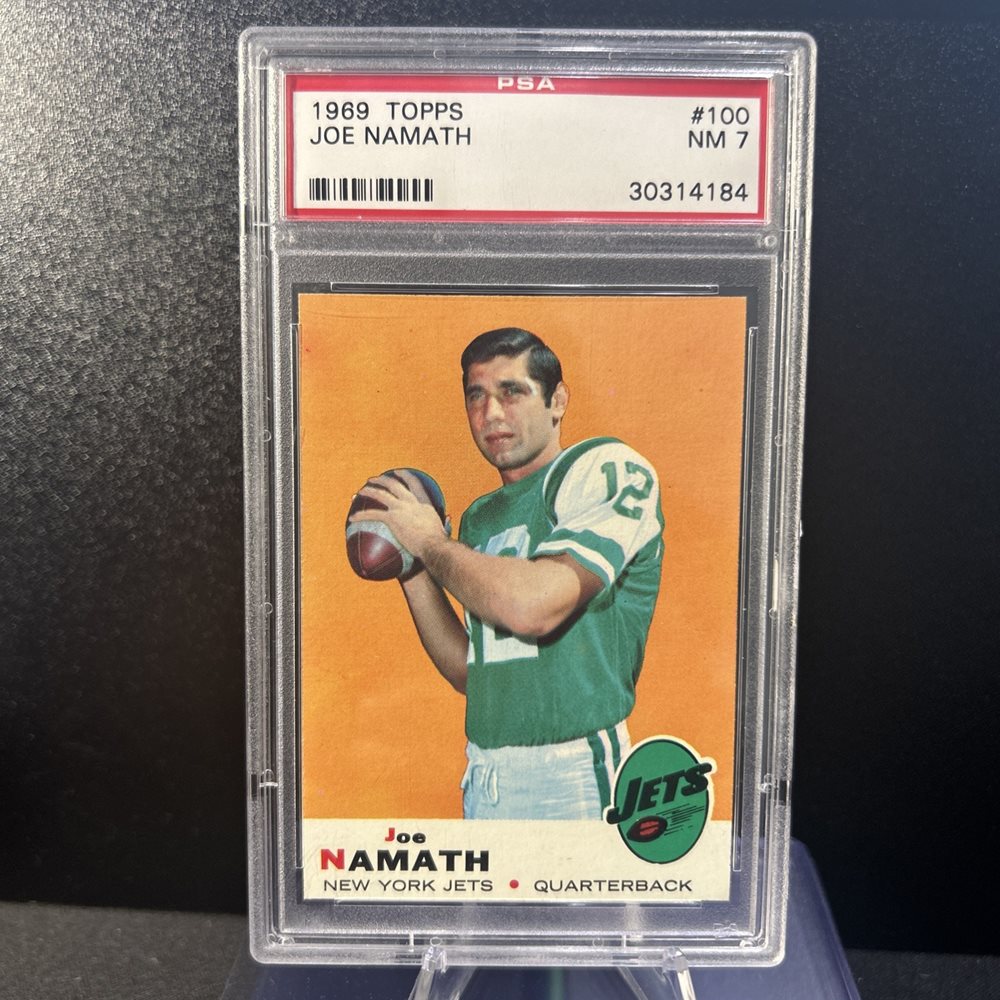 1969 JOE NAMATH TOPPS PSA 7 NM GRADE HOF NEW YORK JETS HARP SHARP (#100) RC