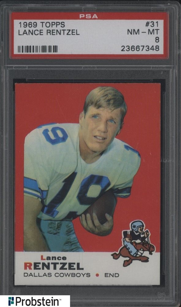 1969 Topps Football #31 Lance Rentzel Dallas Cowboys PSA 8 NM-MT