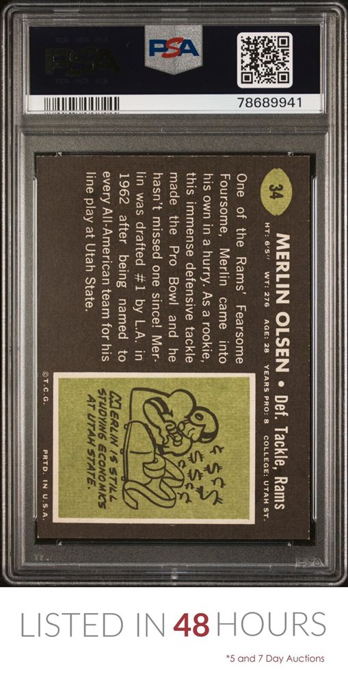 1969 TOPPS #34 MERLIN OLSEN RAMS HOF PSA 7.5