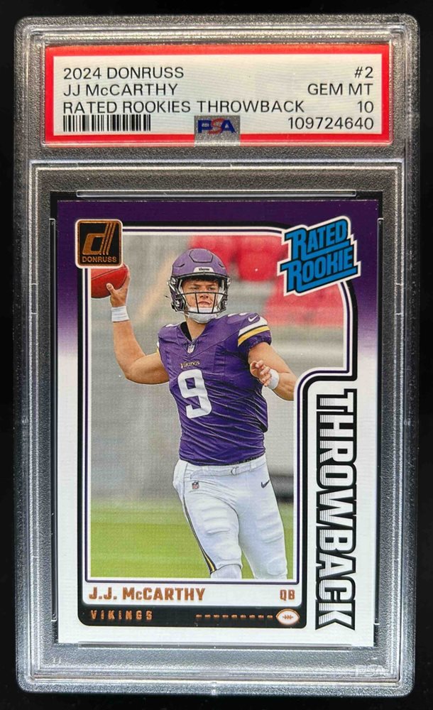 2024 Donruss J.J. McCarthy Rated Rookie Throwback #2 Vikings PSA 10