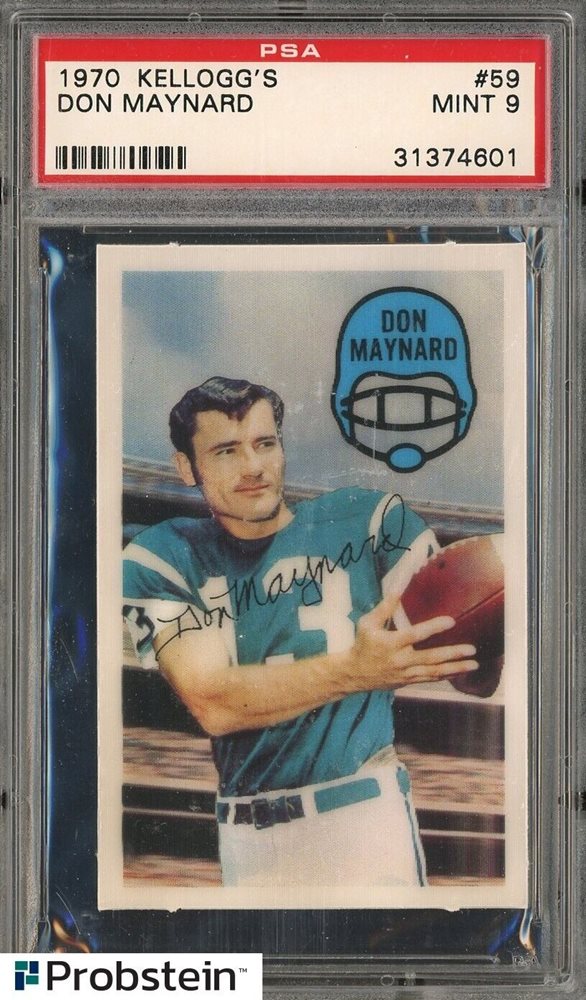 1970 Kellogg's 3-D Football #59 Don Maynard Jets HOF PSA 9 MINT