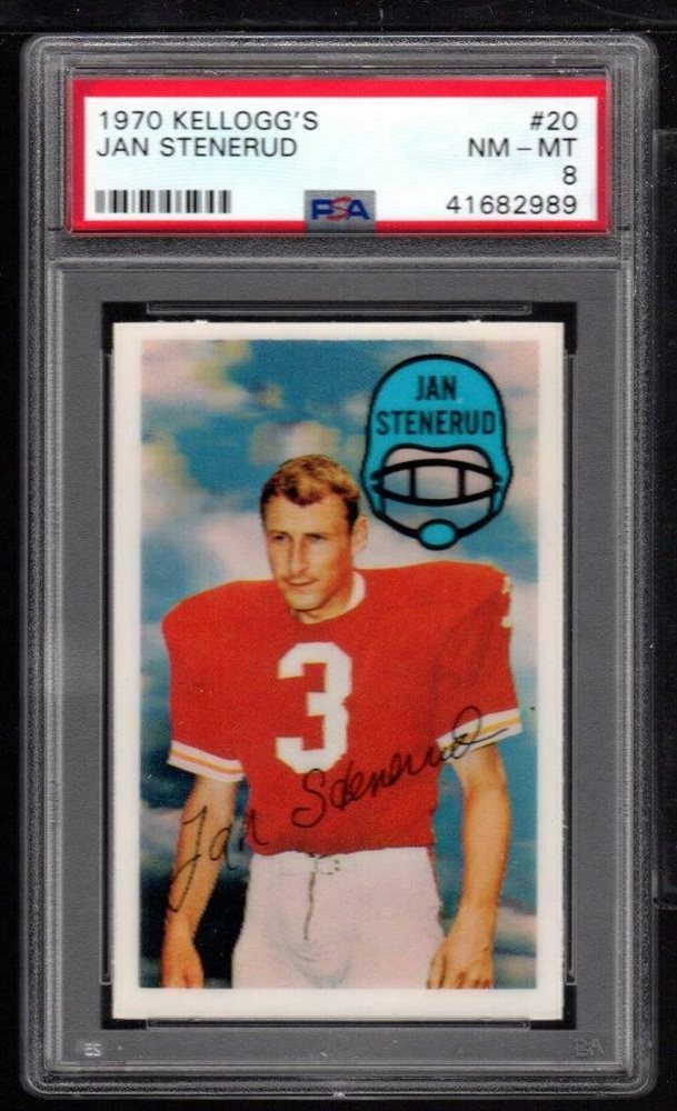 1970 Kellogg's Football Jan Stenerud #20 PSA 8 NM-MT