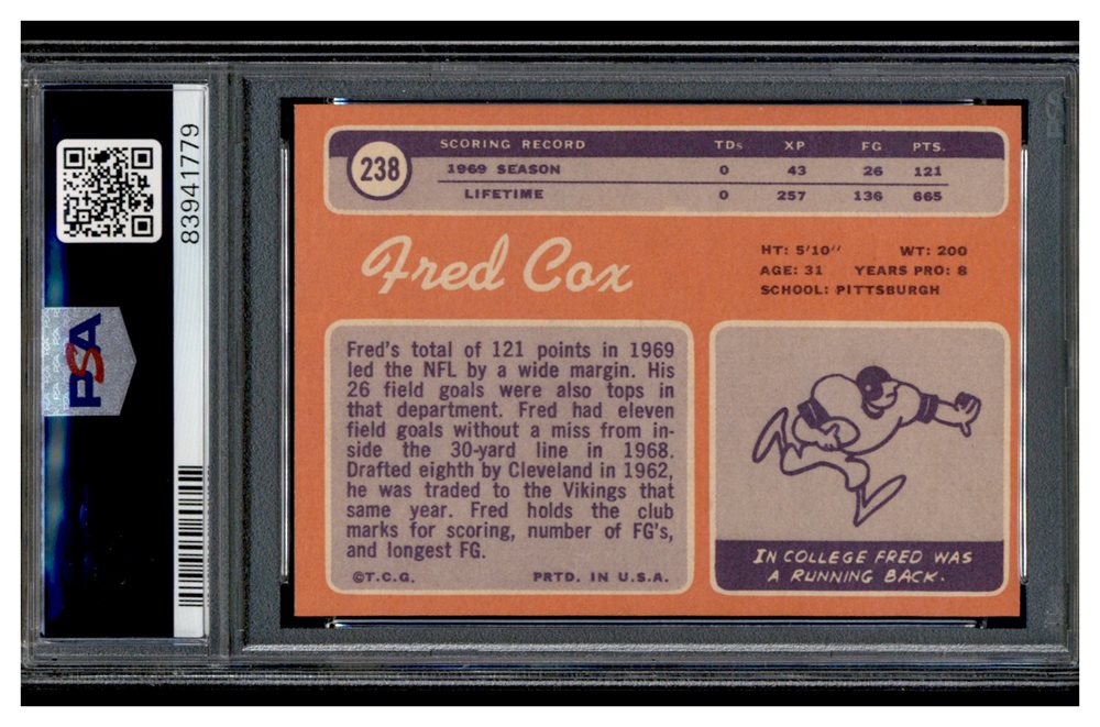 83941779 1970 Topps #238 Fred Cox Minnesota Vikings PSA 9 MINT