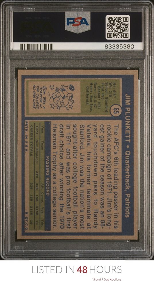 1972 TOPPS #65 JIM PLUNKETT RC HEISMAN PATRIOTS PSA 9