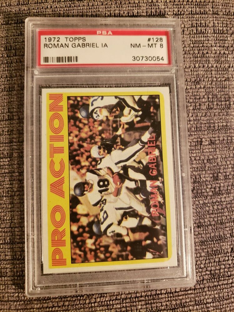 1972 Topps Football Card #128, Roman Gabriel IA, PSA 8 NM-MT, Rams