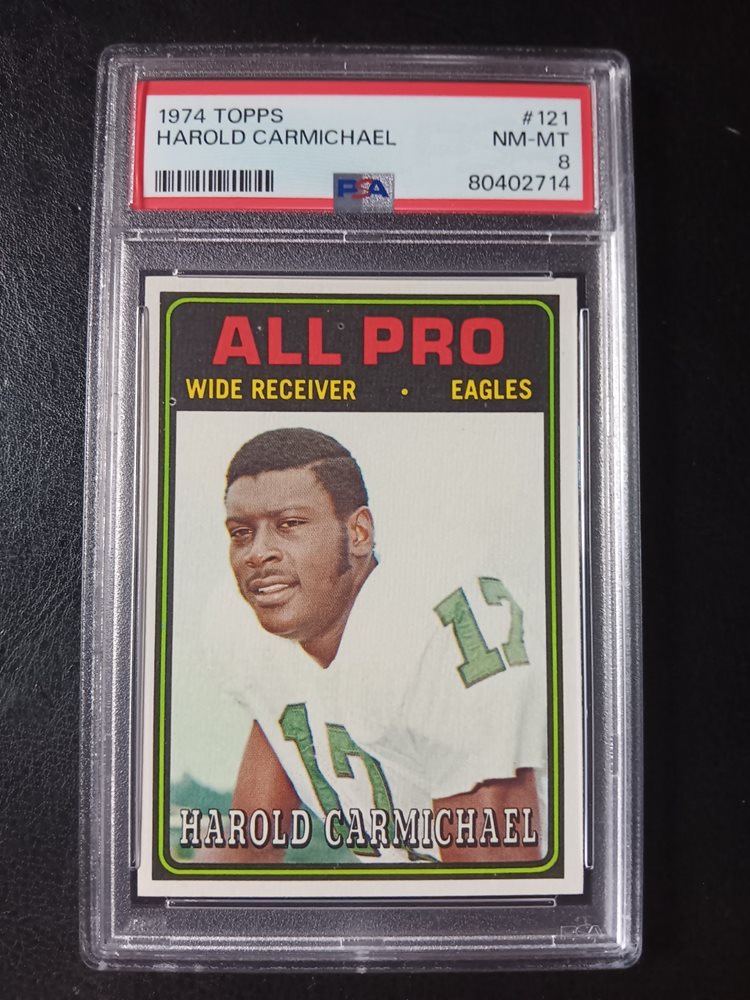 1974 Topps Football 121 Harold Carmichael HOF RC rookie card PSA 8 Beauty