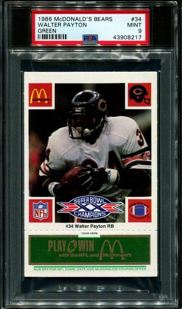 1986 McDONALD'S BEARS GREEN #34 WALTER PAYTON BEARS HOF PSA 9 F2761660-217