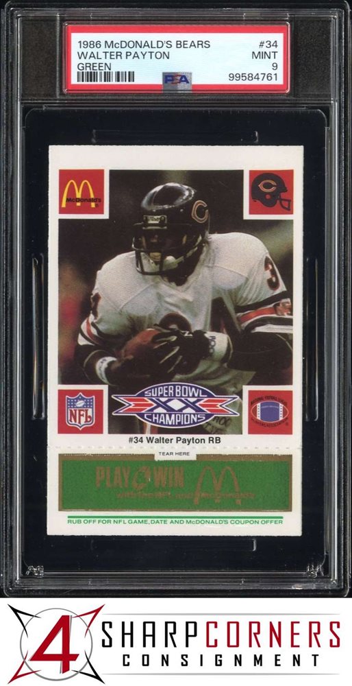 1986 McDONALD'S BEARS GREEN #34 WALTER PAYTON HOF PSA 9