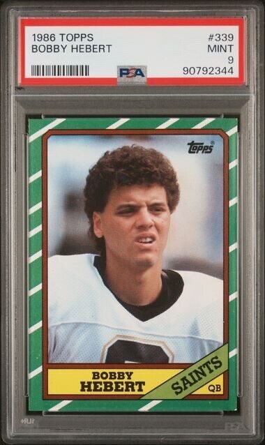 1986 Topps Football Bobby Hebert #339 Rookie PSA 9 Mint Saints