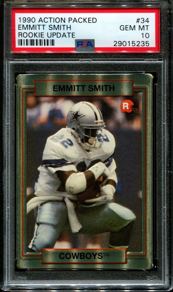 1990 ACTION PACKED ROOKIE UPDATE #34 EMMITT SMITH RC HOF PSA 10 F2581610-235