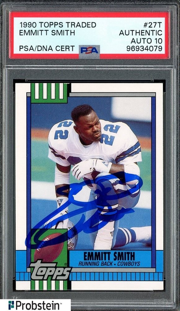 Emmitt Smith HOF Signed 1990 Topps Traded #27T RC Rookie PSA/DNA 10 AUTO