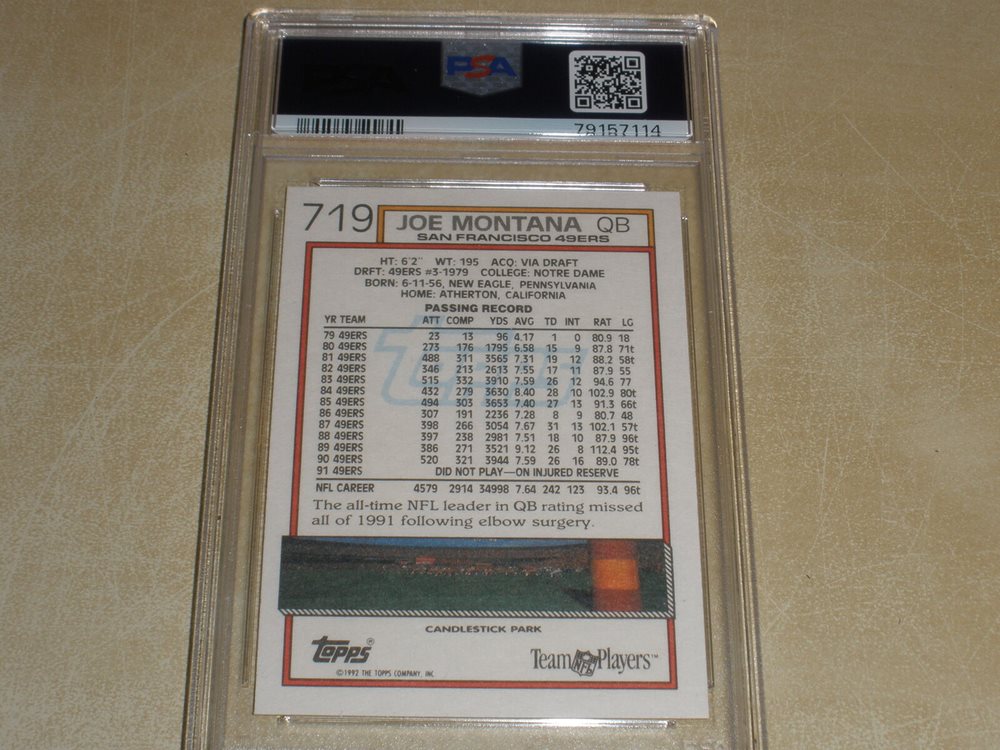 1992 Topps Football #719 Joe Montana PSA 8
