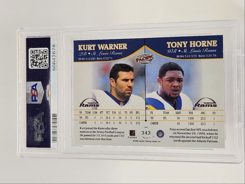 Auction Prices Realized Football Cards 1999 PACIFIC Kurt Warner / Tony Horne