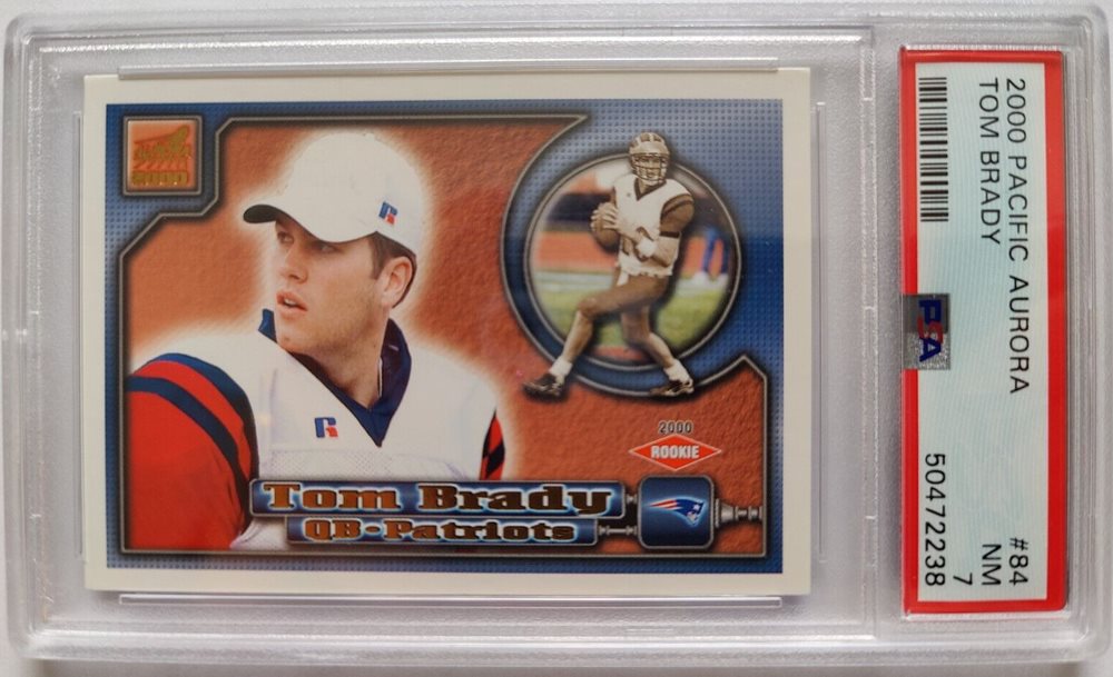 2000 Pacific Aurora-Tom Brady(Patriots)Rookie Card#84-PSA 7 Near MT!