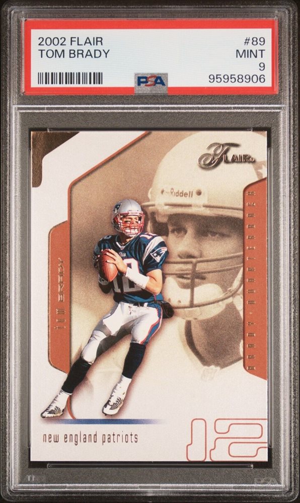 Tom Brady 2002 Flair #89 graded a 9 by PSA.