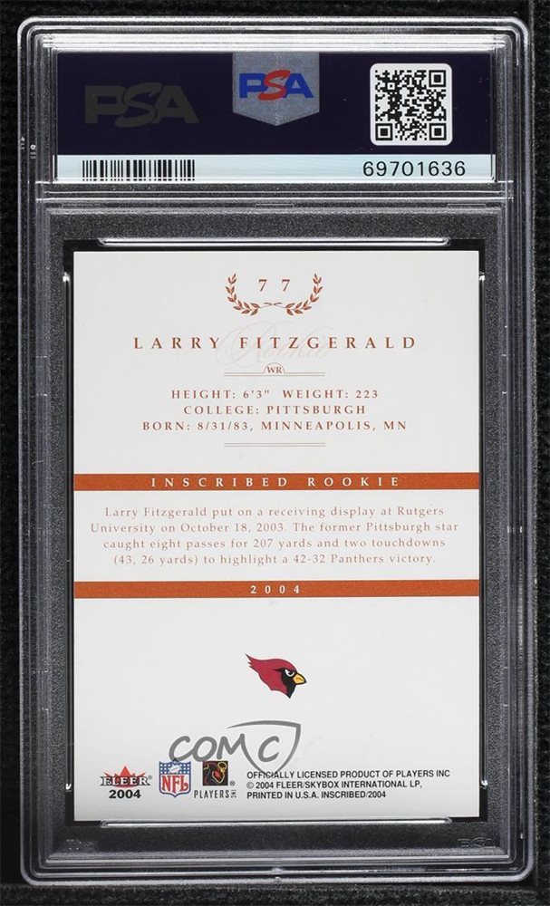 2004 Fleer inScribed /750 Larry Fitzgerald #77 PSA 9 MINT Rookie RC
