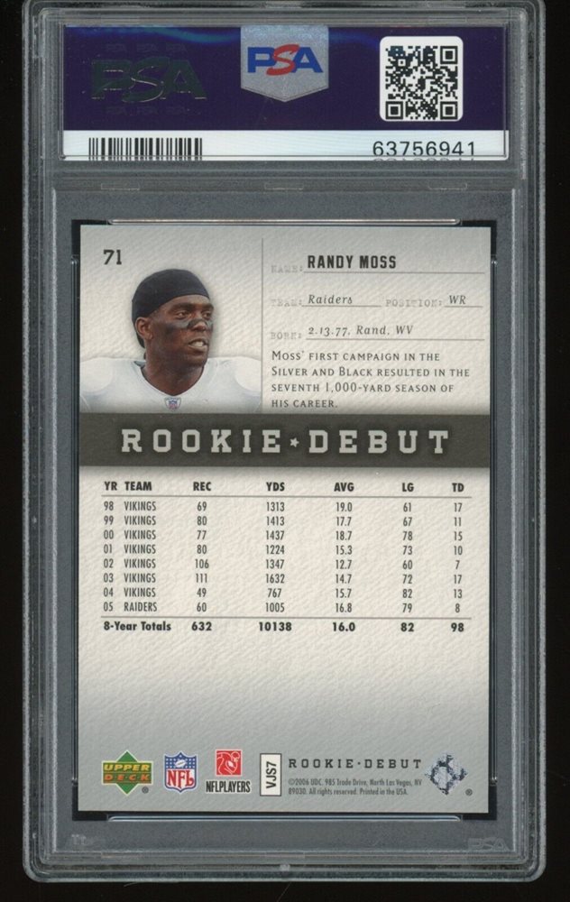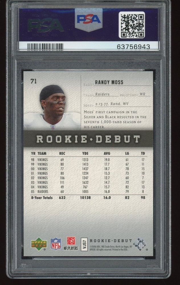 Auction Prices Realized Football Cards 2006 UPPER DECK ROOKIE DEBUT Randy Moss