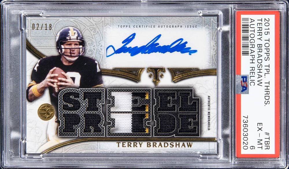 Auction Prices Realized Football Cards 2015 TOPPS TRIPLE THREADS AUTOGRAPH RELIC Terry Bradshaw