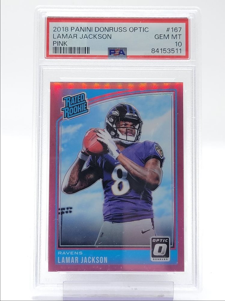 LAMAR JACKSON 2018 DONRUSS OPTIC RATED ROOKIE PINK RC PSA 10 Q4408