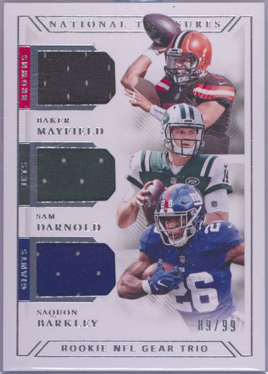 2018 PANINI NATIONAL TREASURES ROOKIE NFL GEAR TRIO MATERIALS