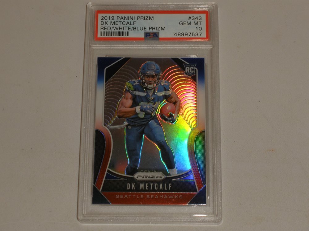 PSA 10 Gem Mint?2019?Panini PRIZM?#343 DK METCALF?RED/WHITE/BLUE?Rookie PRIZM?RC