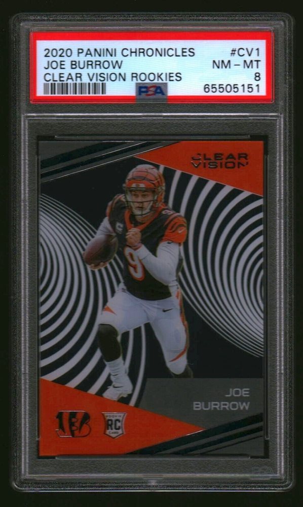 JOE BURROW BENGALS LSU 2020 PANINI CLEAR VISION CHRONICLES CV1 PSA 8 RC ROOKIE !