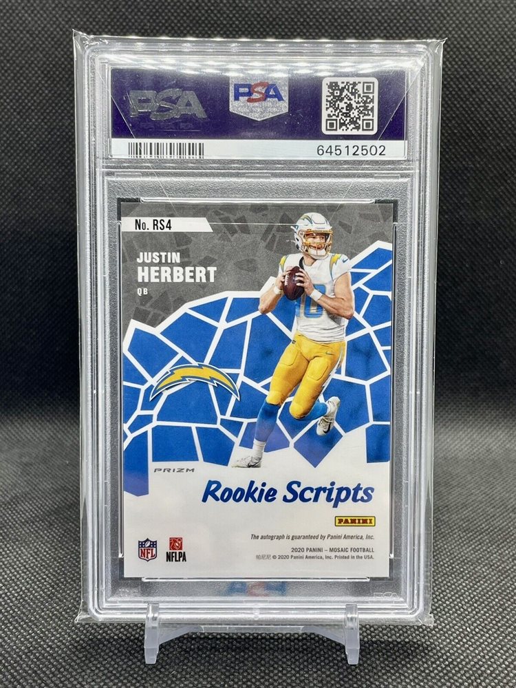 2020 Panini Mosaic JUSTIN HERBERT RC Rookie Scripts Auto PRIZM PSA 9 Chargers