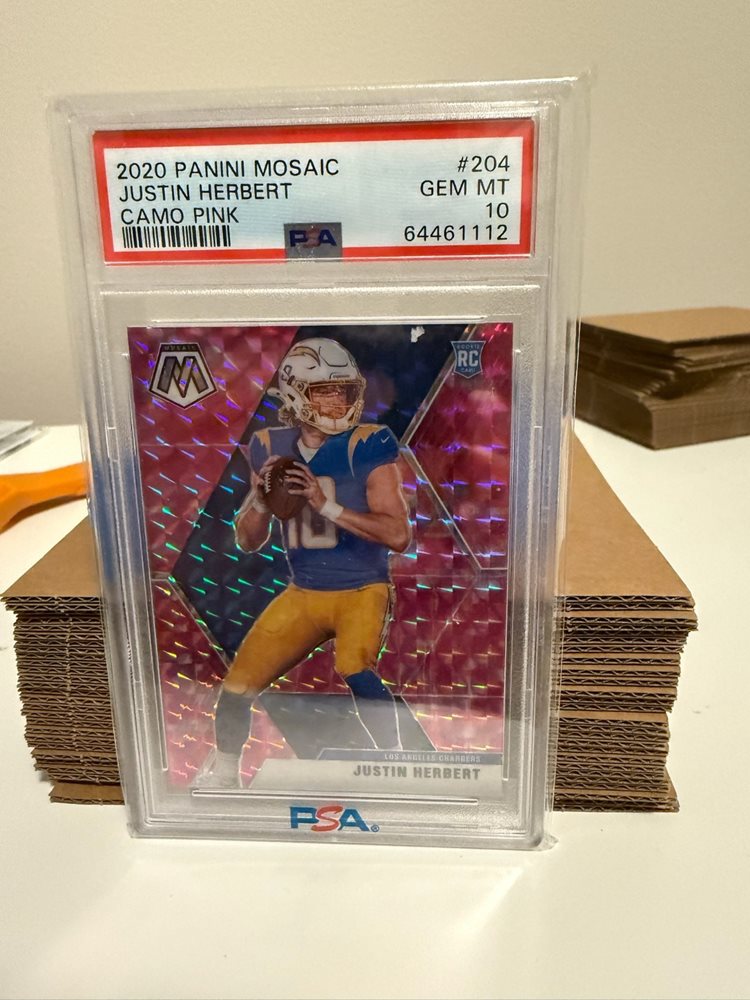 2020 Panini Mosaic Justin Herbert Camo Pink Prizm Rookie PSA 10 #204