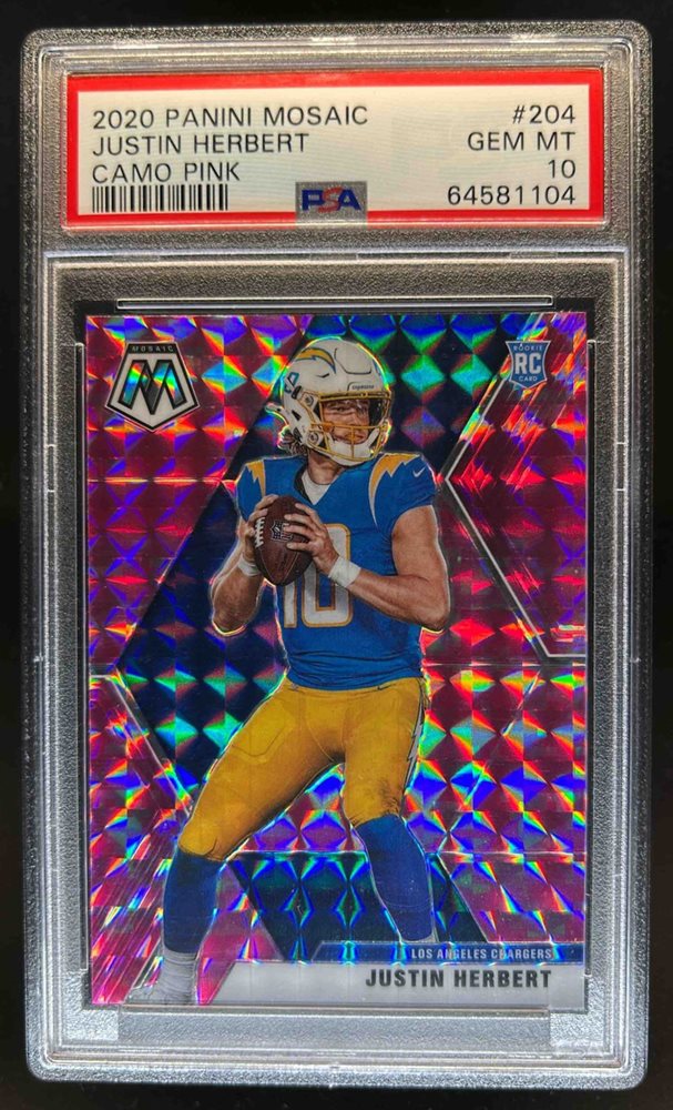 2020 Mosaic Justin Herbert RC Prizm Camo Pink Rookie #204 Chargers PSA 10