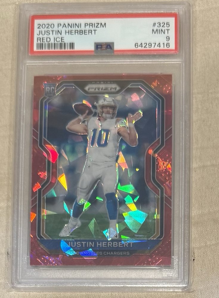 Justin Herbert 2020 Panini Prizm #325 Red Ice Rookie PSA 9 MINT Chargers Rookie