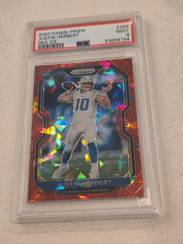 2020 Panini Red Ice Crystals Justin Herbert Rookie Card #325 PSA 9