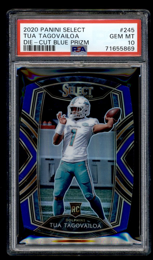 71655869 2020 Panini Select #245 Tua Tagovailoa Die-Cut Blue Rookie PSA 10