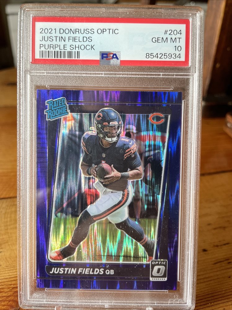 2021 Optic Justin Fields Purple Shock Prizm Rated Rookie RC #204 PSA 10 Bears