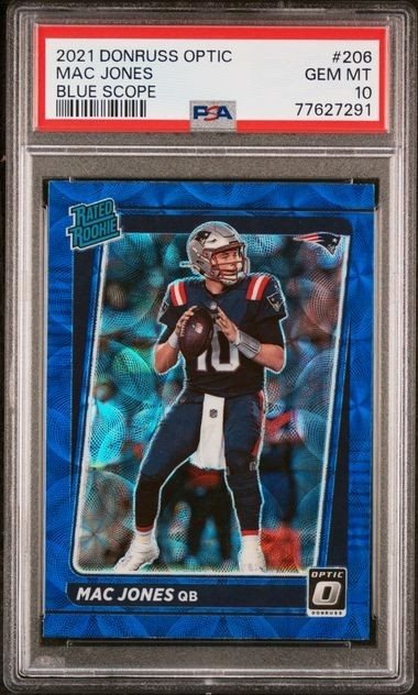 2021 Donruss Optic Mac Jones Blue Scope RC Rated Rookie #206 PSA 10